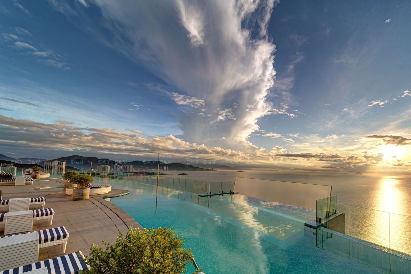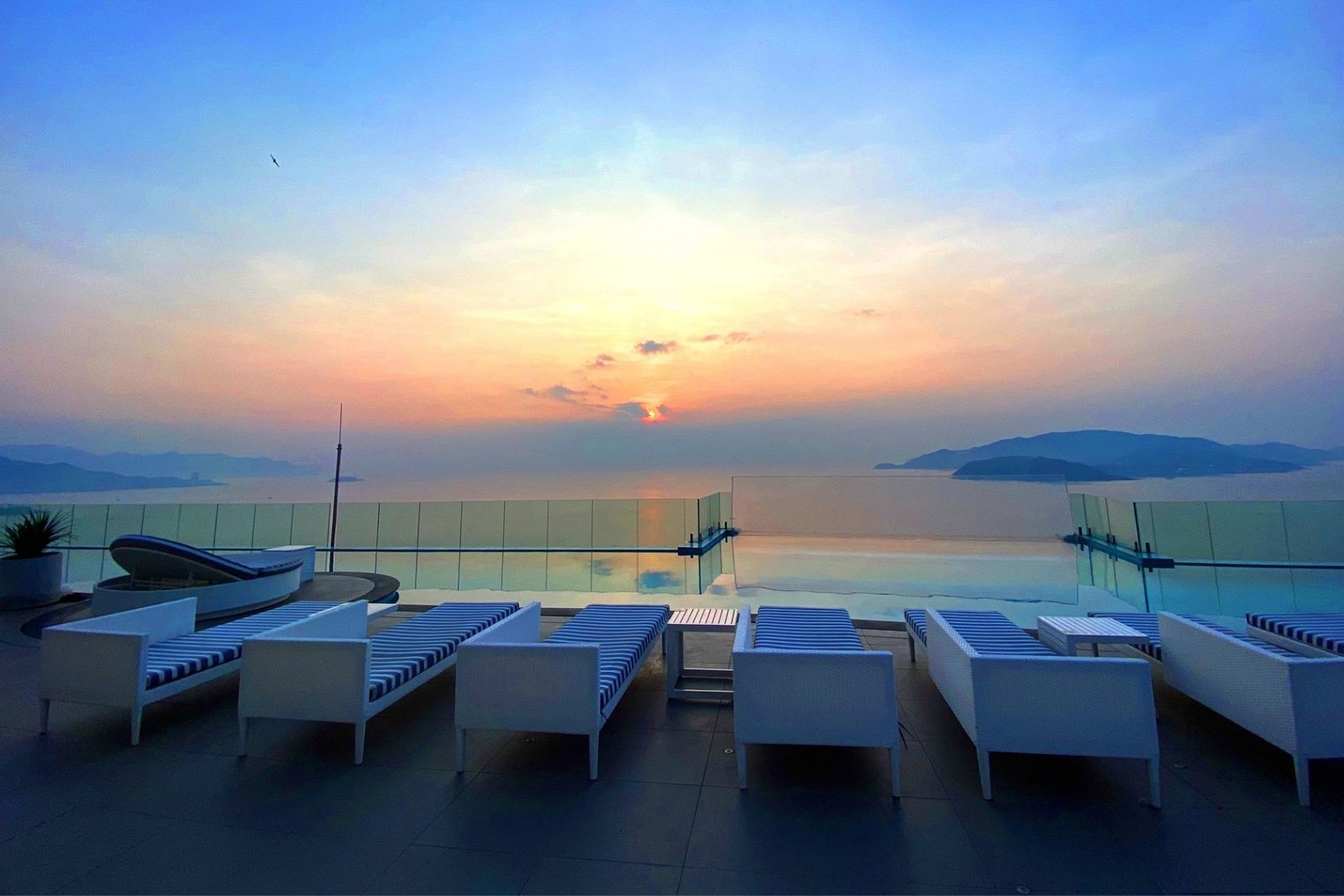 Experience the breathtaking beauty of Nha Trang as the sun sets from Panorama Nha Trang SanVilla. Enjoy the stunning view from our Sky Blue Lounge or your private balcony, where the vibrant colors of the sky blend seamlessly with the serene ocean horizon. This magical moment is the perfect way to unwind and reflect on your day.